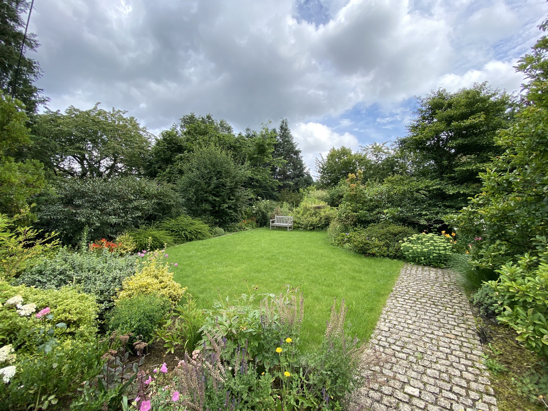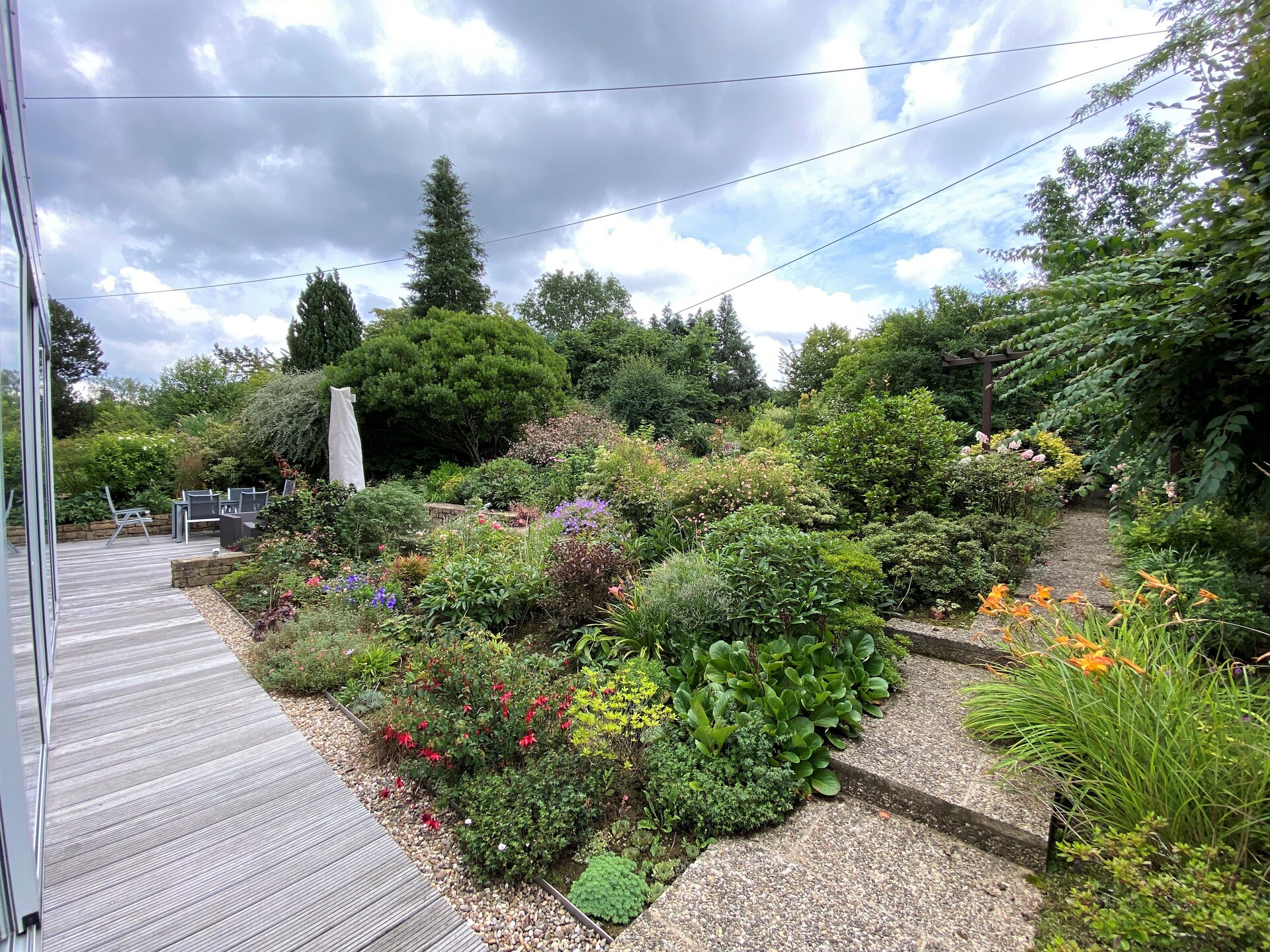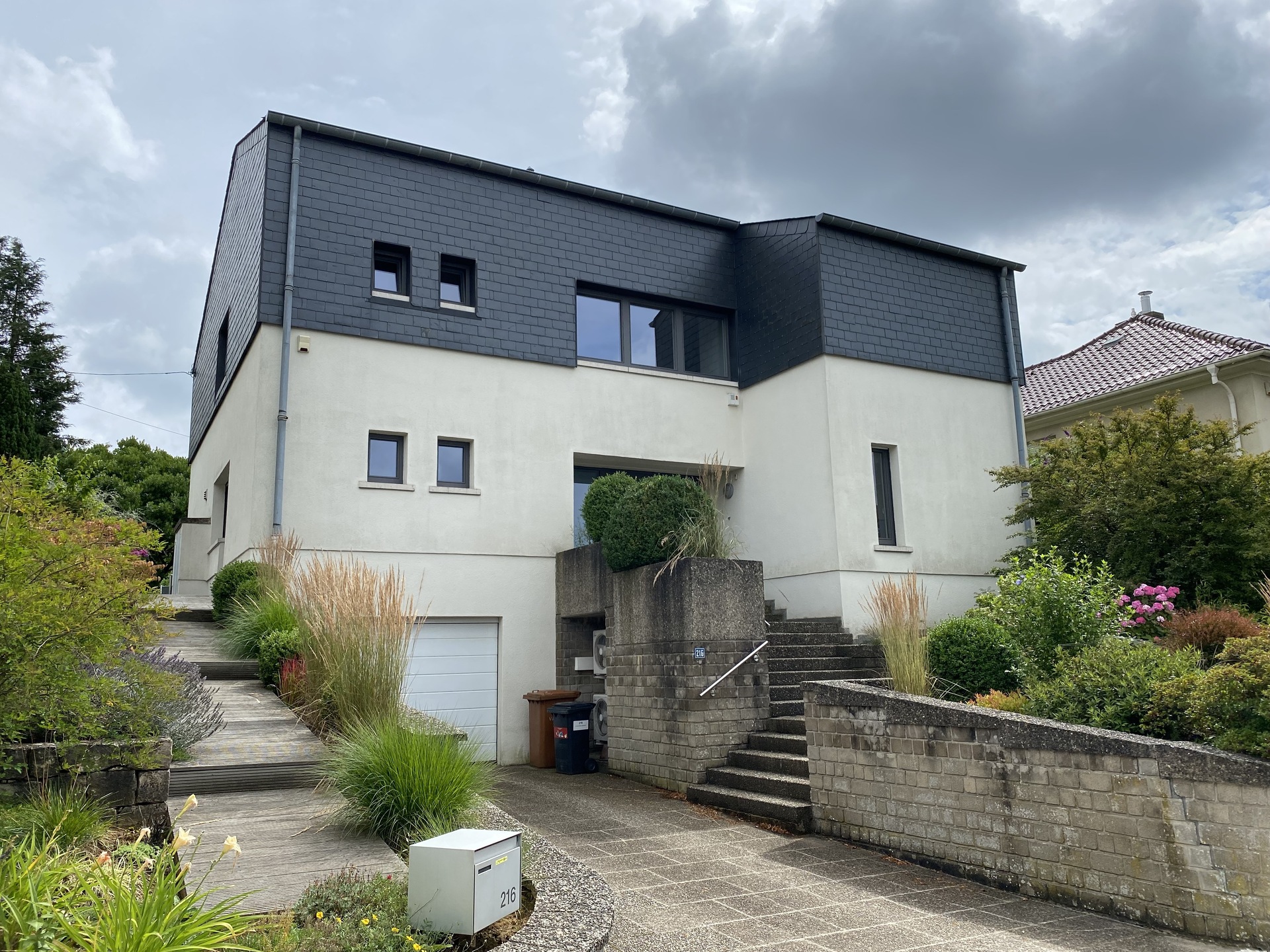 In the basement: a 2-car garage, 2 storage rooms, a utility room, a separate half-bath, a laundry room, and access to the garden.